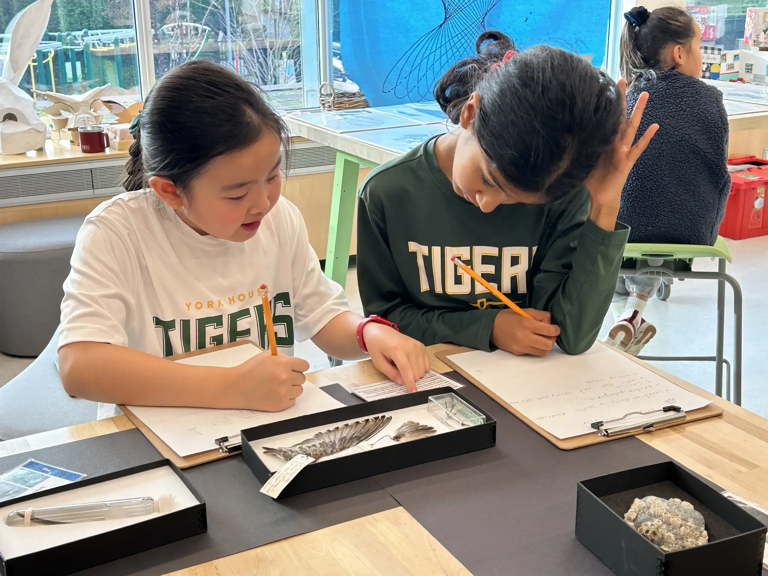 Students examined feathers, shells, and other coastal artifacts up close, sketching what they observed and noting important characteristics. They discovered how these organisms adapt to survive in their banded seashore zones, gaining a deeper understanding of the diverse adaptations found along our coast.